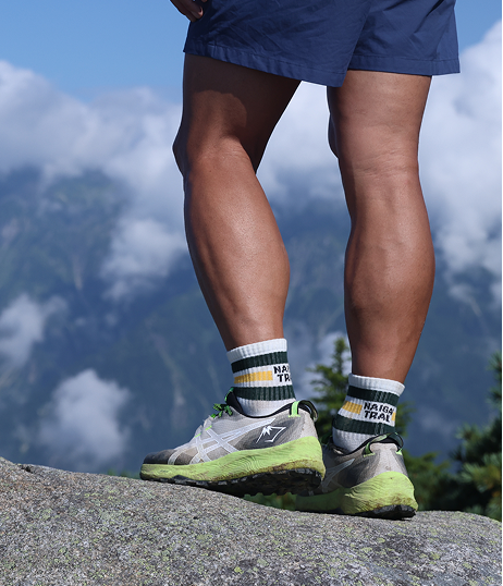 そんな瞬間にも、NAIGAI TRAILのアイテムは静かに寄り添います。靴下にはクッション性やアーチフィットサポートを、帽子には通気性やサイズ調整機能を、タオルには速乾性と消臭性を。