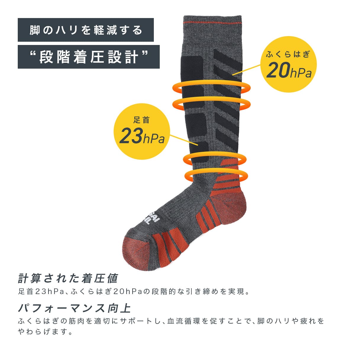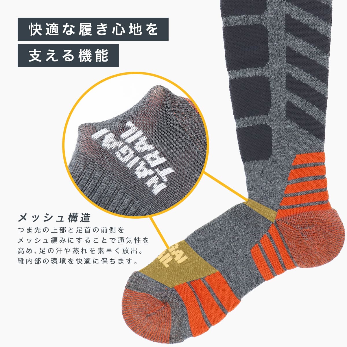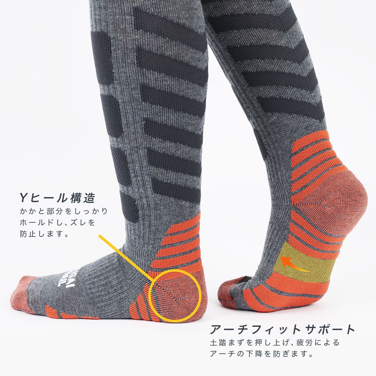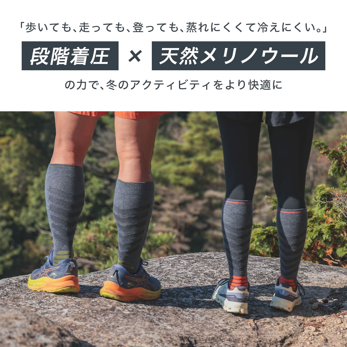 トレイルランニングイベント OSJ KAMI100(70km) に参加し、新商品「メリノウール アームカバー」の実地テストを行いました。この大会は紅葉の山々を舞台に、トレイル比率約80%のタフなコースを走る大会です。 使用シーンと着用方法 AM8:00スタート〜22:30ゴールまで終日着用(約14.5時間)レース中に履き替えや脱ぎ履きはせず、長時間連続着用での状態をチェックしました。 体感と性能評価 ● 適度な着圧が心地よいふくらはぎをやさしく支える感覚があり、足が軽くなるように感じました。 ● 温度変化に強い寒い時間帯は温かく感じる一方で、日中の気温が上がる時間帯でも暑さを感じにくく、快適さが続きました。メリノウール混ならではの体感だと思います。 メリット – 使い勝手 –このハイソックスは、着圧機能による足もとのサポートと、ひざ下の防寒性を両立していると感じました。また、70kmの長時間行動でもニオイが気になりにくい印象で、これもメリノウール特有の性質によるものだと考えます。着用のおすすめは – 秋冬〜春先シーズン –● トレイルラン