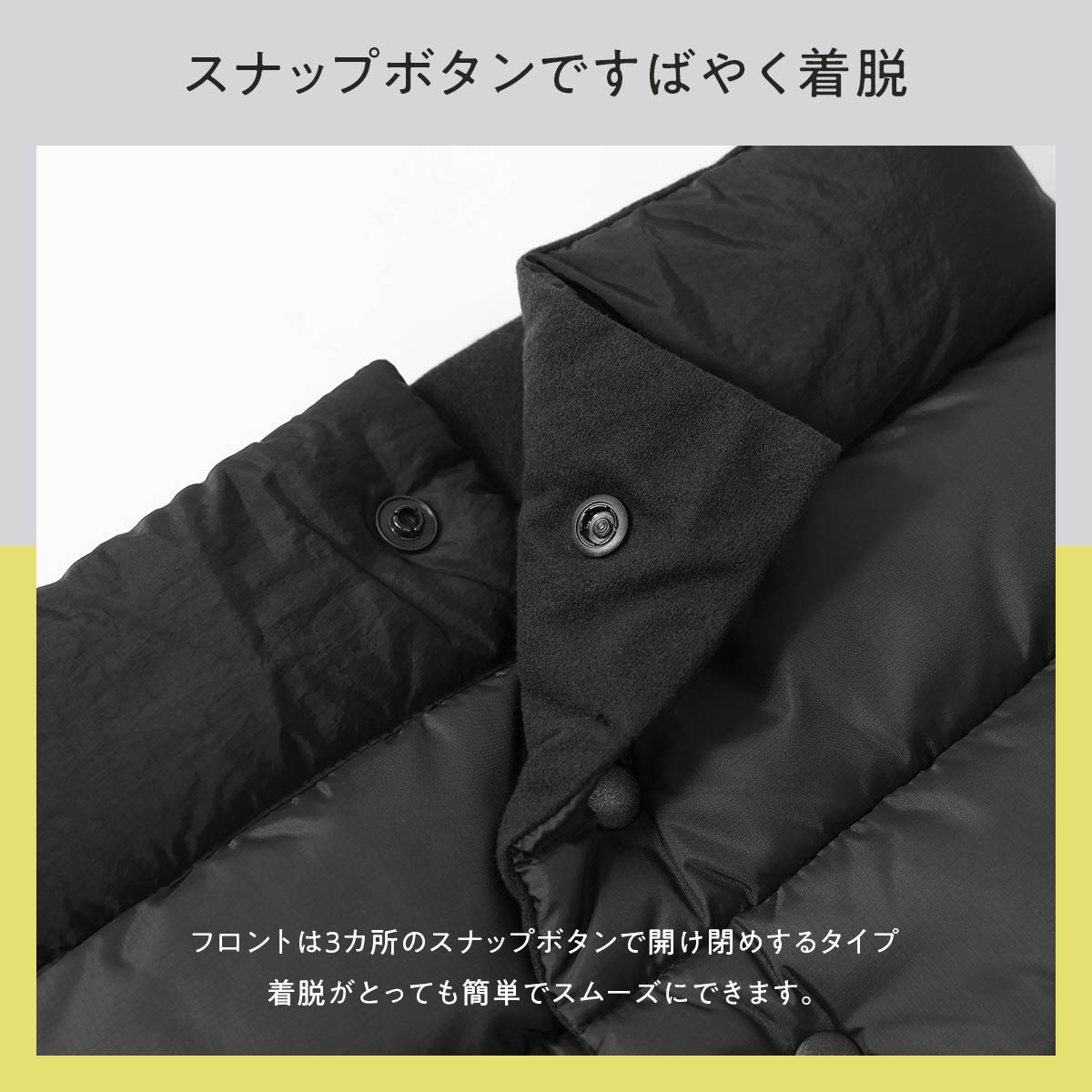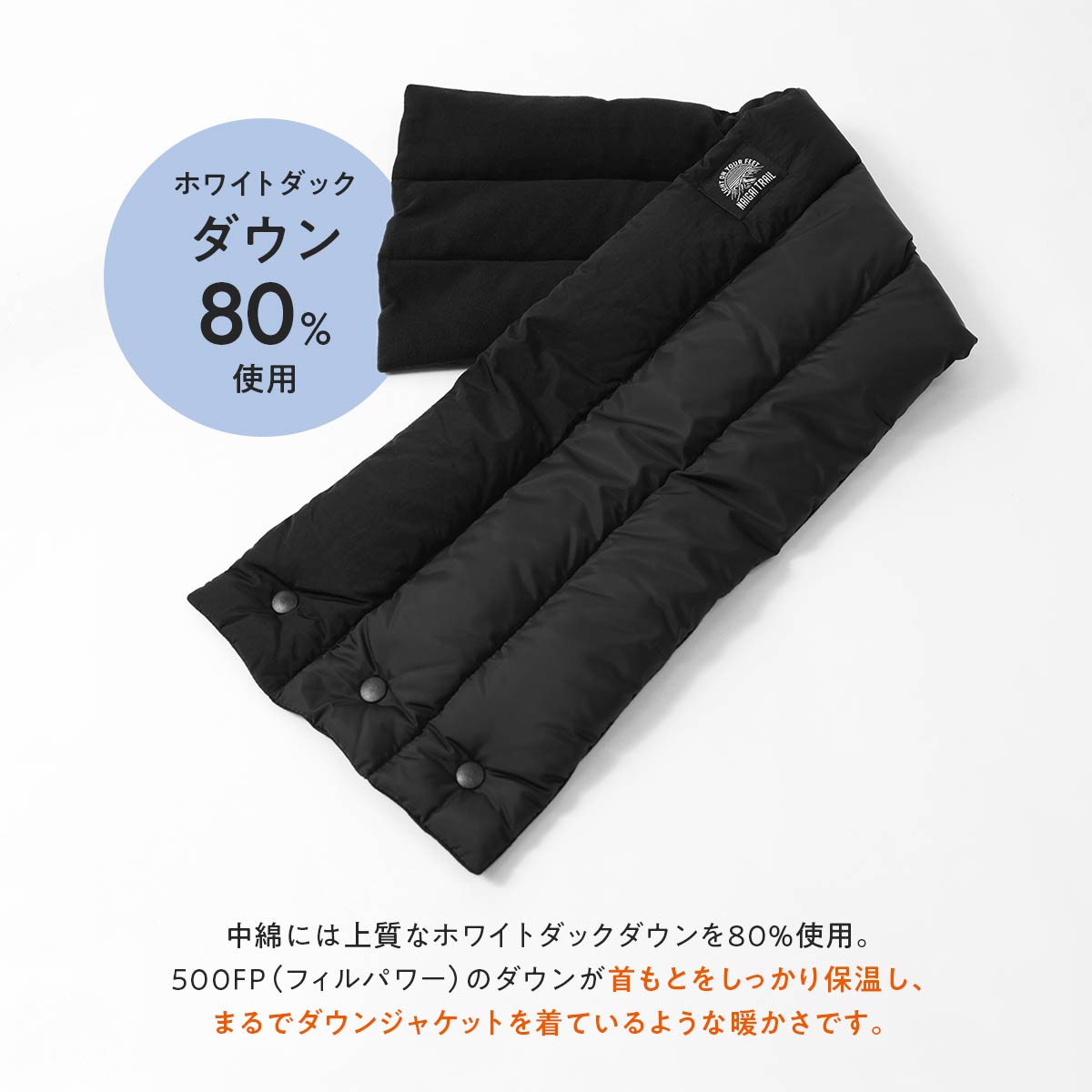 登山やキャンプを愛する社員が企画した、フィールド発想のダウンマフラー。良質なホワイトダックダウンを採用し、軽量ながら高い保温性を実現。表生地には撥水加工、肌にあたる部分は柔らかな起毛素材を使用しています。前開き仕様で着脱がスムーズ。フロントボタンはプラスチック製を採用し、極寒環境で金属が指に貼り付くトラブルを防ぎます。コンパクトに収納できるのもポイント。ダウン製なので圧縮すれば驚くほど小さくなり、ジップ袋やコンプレッションバッグにもすっきり収まります。