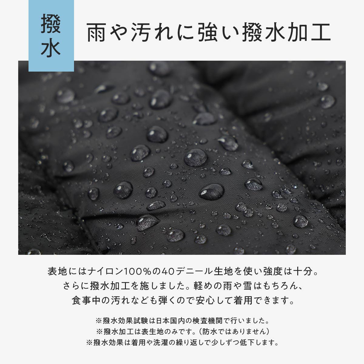 表生地にはナイロンタフタ40デニール生地を使用、撥水加工を施していますので雨、雪、汚れ対策にも重宝します。