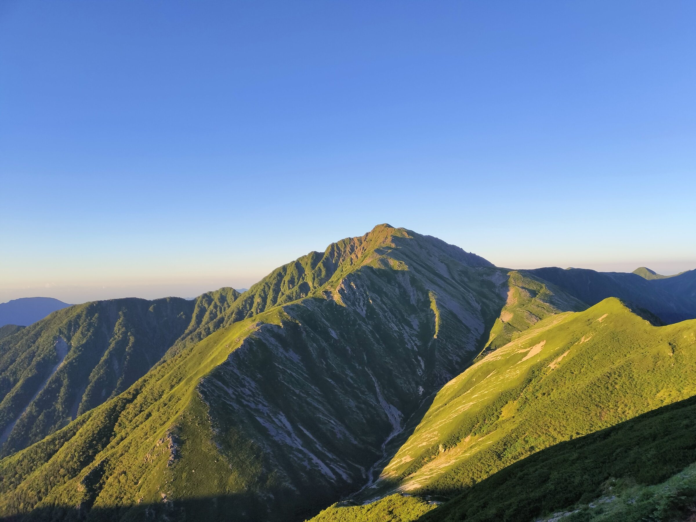この日は赤石岳、聖岳とアップダウンの連続。特に聖岳への登りはラスボス感満載で、かなり体力を削られました。